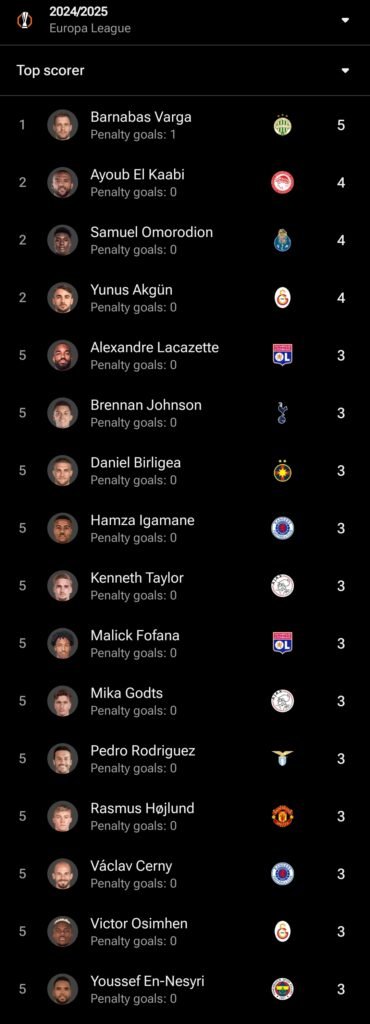 - Sua capacidade de aparecer em momentos cruciais torna-o um dos principais goleadores da Europa League 2025.